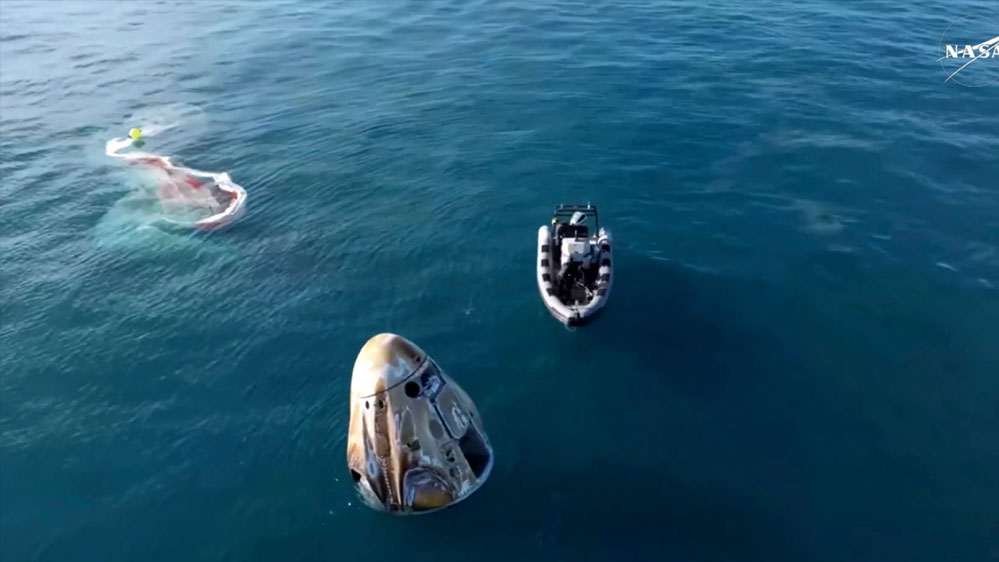 14 जनवरी को शाम को ड्रैगन यान ISS से अलग हुआ. रात में डी-ऑर्बिट बर्न (धीमा होने की प्रक्रिया) पूरी हुई. पैराशूट की मदद से यान समुद्र में उतरा. रिकवरी शिप और तेज नावों की टीम ने यान को सुरक्षित किया और मुख्य डेक पर लाया. एस्ट्रोनॉट्स यान से बाहर निकले.