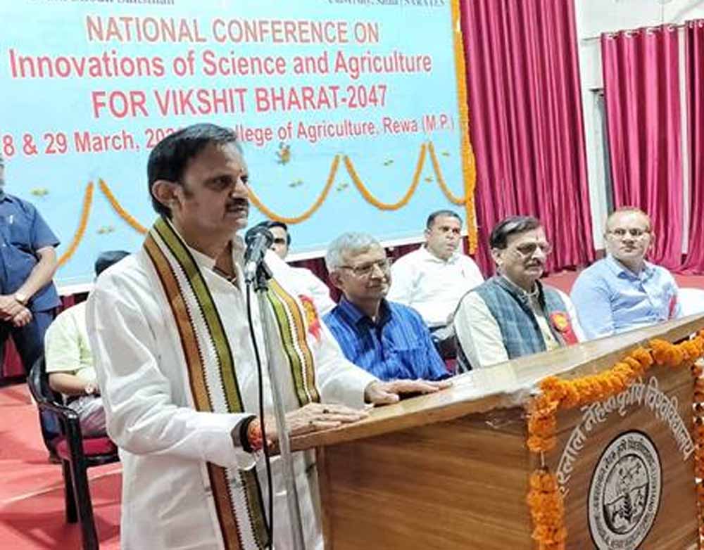 उप मुख्यमंत्री राजेन्द्र शुक्ल ने कृषि महाविद्यालय रीवा में विकसित भारत 2047 के लिए विज्ञान और कृषि में नवाचार विषय पर आयोजित दो दिवसीय राष्ट्रीय सम्मेलन शुभारंभ किया। इस अवसर पर उप मुख्यमंत्री ने कहा कि खेती हमारी अर्थव्यवस्था का आधार है। हम वर्तमान में विपुल अन्न और फल सब्जियों का उत्पादन कर रहे हैं। उत्पादन बढ़ाने के लिए हमने खाद और कीटनाशकों का अत्यधिक उपयोग किया है, जिसके कारण धरती माता बीमार हो गई हैं। धरती माता को स्वस्थ रखना और भावी पीढ़ी को स्वस्थ जीवन देने के लिए प्राकृतिक खेती इस समय की सबसे बड़ी आवश्यकता है । गोपालन पर आधारित प्राकृतिक खेती से ही हमें अच्छे स्वास्थ्य की नेमत मिलेगी। हर किसान अपनी कुल जमीन के दस प्रतिशत भाग पर प्राकृतिक विधि से अनाज फल और सब्जी का उत्पादन करें जिससे कम से कम उसके परिवार को रसायन रहित पौष्टिक आहार मिल सके। सेमिनार का आयोजन कृषि महाविद्यालय, जवाहरलाल नेहरू कृषि विश्वविद्यालय जबलपुर, एकेएस यूनिवर्सिटी तथा श्याम दुलारे तिवारी शिक्षा एवं शोध संस्थान द्वारा किया जा रहा है।