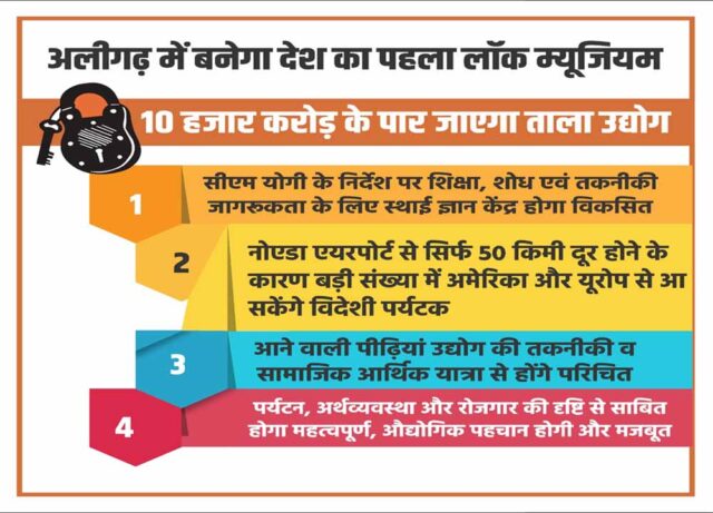 मुख्यमंत्री के निर्देश पर तैयार की जा रही इस योजना का उद्देश्य अलीगढ़ के ताला उद्योग को नई ऊंचाइयों तक पहुंचाना है। यह म्यूजियम न केवल एक प्रदर्शनी स्थल होगा, बल्कि एक व्यापक औद्योगिक और शैक्षणिक केंद्र के रूप में विकसित किया जाएगा। यहां पारंपरिक हस्तनिर्मित तालों से लेकर आधुनिक हाई-टेक सुरक्षा प्रणालियों तक की विकास यात्रा को प्रदर्शित किया जाएगा, जिससे आने वाली पीढ़ियां इस उद्योग की तकनीकी, सामाजिक और आर्थिक यात्रा को समझ सकेंगी।