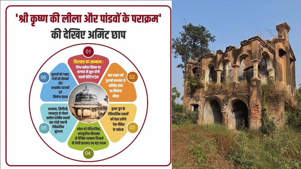 ‘श्री कृष्ण की लीला और पांडवों के पराक्रम’ की कहानी आप सभी ने सुनी होगी। अब इसकी अमिट छाप भी देख सकेंगे। मुख्यमंत्री योगी आदित्यनाथ के निर्देश पर देश दुनिया के लिए विश्व धरोहर दिवस पर 18 अप्रैल को बागपत से हेरिटेज ट्रेल शुरू की जा रही है। यहां द्वापर युग के ऐतिहासिक स्थलों से देश-विदेश के पर्यटक परिचित हो सकेंगे। इसके अंतर्गत बरनावा, सिनौली, लाक्षागृह से लेकर प्राचीन धार्मिक स्थलों तक ऐतिहासिक श्रृंखला जोड़ी जा रही है। इसकी एक और खास बात है कि युवाओं को यहां गाइड, गांवों को होमस्टे और स्थानीय व्यंजनों को योगी सरकार बढ़ावा भी देने जा रही है।